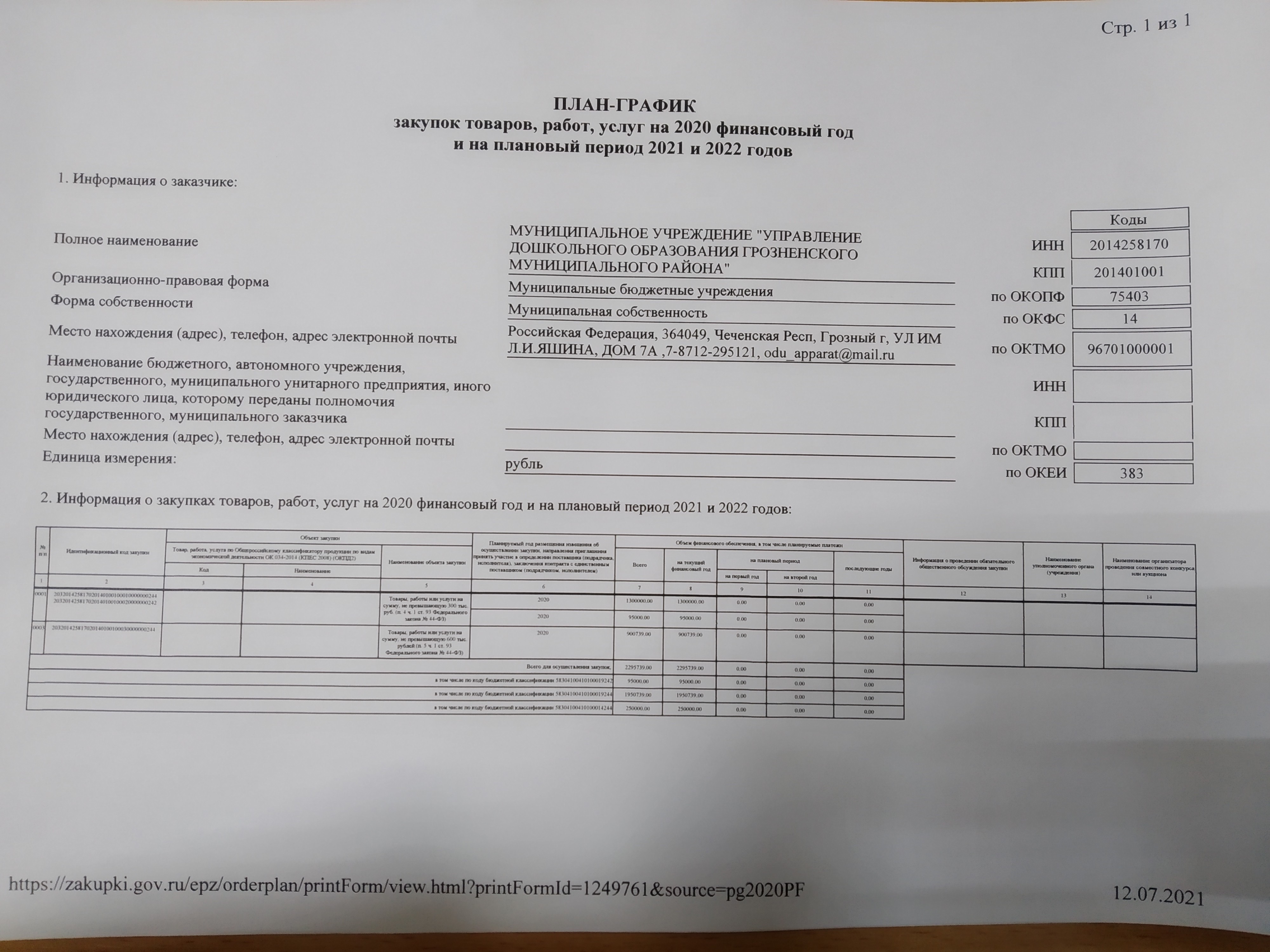 Отчет МУ «Управление дошкольного образования Грозненского муниципального района о проделанной работе» за 2020 год